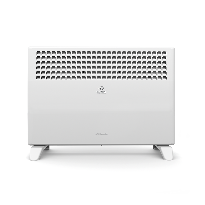 ATRI Meccanico обладает устойчивой конструкцией на ножках и уникальным дизайном с увеличенной площадью воздуховыпускных отверстий. Механическая панель управления конвектора расположена на боковой части для комфортного и удобного использования. Возможна установка прибора на стену, все необходимое уже входит в комплектацию.